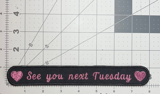 See you next tuesday embroidered banner patch • funny • cute • iron on/sew on patch • Velcro patch