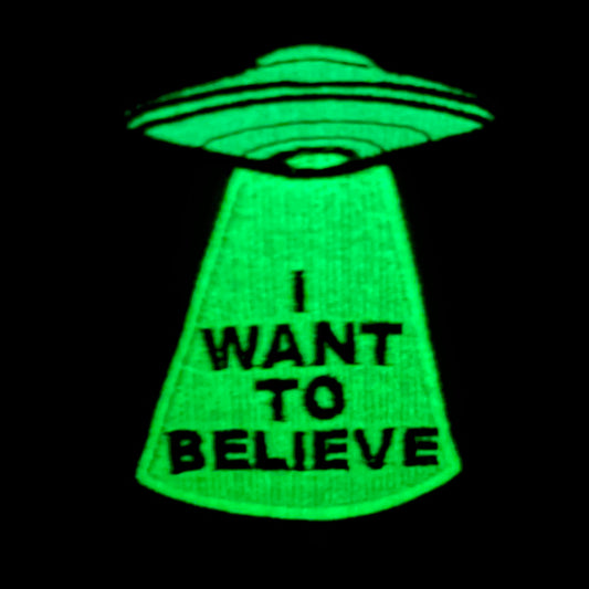 I Want To Believe embroidered patch • ufo • X-Files • GLOW in the dark • iron on patch • sew on patch • Velcro patch • peel & stick