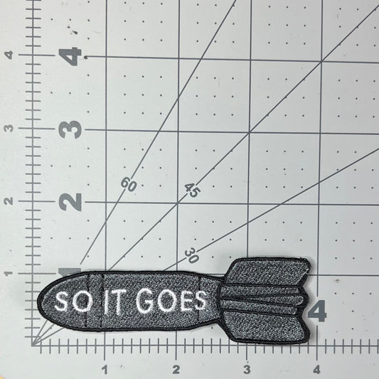 So It Goes embroidered patch • Kurt Vonnegut • Slaughterhouse-five • iron on/sew on patch • Velcro patch • peel & stick